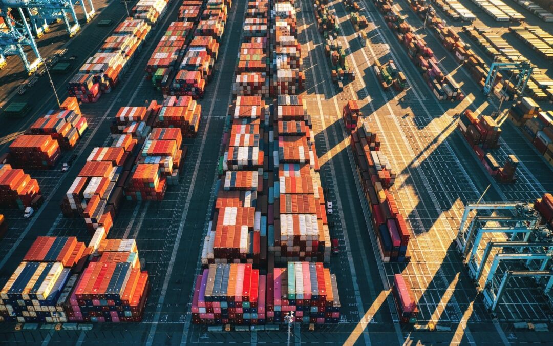 Port area with stacked containers
